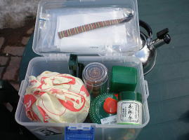 アウトドア系野点籠は、プラスチック製のケースにまとめてあります