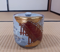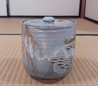 小振りの水指で、転写の普及品と違い、作家は不明ですが手書きの良い品です