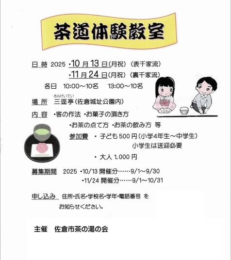 茶道体験教室のおしらせ・佐倉市茶の湯の会